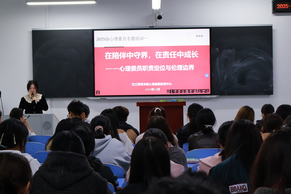 为筑牢校园心理健康防线,系统性赋能新生心理委员精准履职,10月16日下午,汉江师范学院心理健康教育中心启动2025级心理委员专题系列培训,首期培训与心理中心实地参观活动同步开展。心理健康教育中心专职教师马桑妮担任主讲,以“理论+实践”的双轨模式,为这支朋辈心理支持队伍拉开成长序幕。